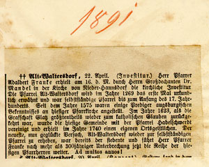 25.02.1891 Errichtung der Pfarrei Altwaltersdorf